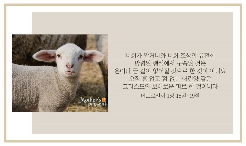 인류의 구원을 위해 십자가에서 희생하신 그리스도처럼, 하나님의교회에서 참 하나님을 만난 나도 희생과 고난을 감수하고서라도 마음과 정성을 다해 세상을 구원하는 일에 노력하고 열심내야겠다.