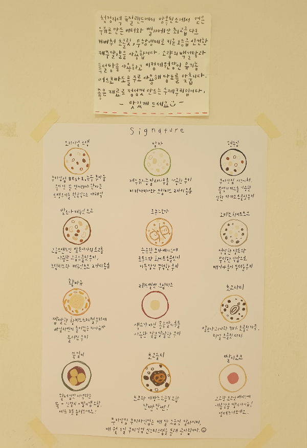 쿠키상점에서 손그림으로 소개되어있는 쿠키 종류들이에영, 요즘 손그림메뉴들이 많이 나오더라구영